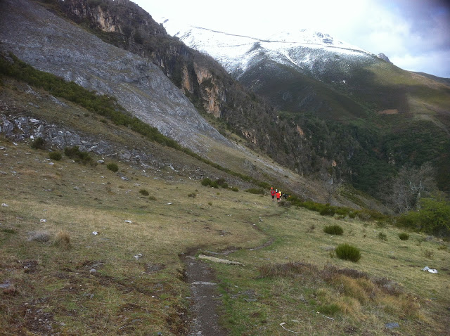Empiezo muy tranquilo, ritmo muy cómodo en el primer tramo, a pesar de que invita a pisar el acelerador. Al poco aparece un pequeño tapón para cruzar un riachuelo, que no será el último, zapatillas empapadas y a seguir.